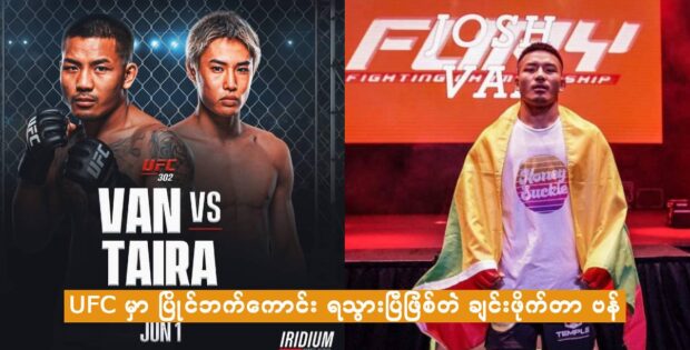 UFC မှာ သုံးပွဲဆက်အနိုင်ရထားတဲ့ ချင်းတိုင်းရင်းသား ဖိုက်တာ Joshua Van ဟာ စတုတ္ထမြောက် ထိုးသတ်ပွဲအဖြစ် ဇွန်လ ၁ ရက် UFC 302 ပွဲမှာ ဂျပန်ဖိုက်တာ Tatsuro Taira နဲ့ ထိုးသတ်ဖို့ UFC ဘက်က စီစဥ်ပေးလိုက်ပါပြီ။