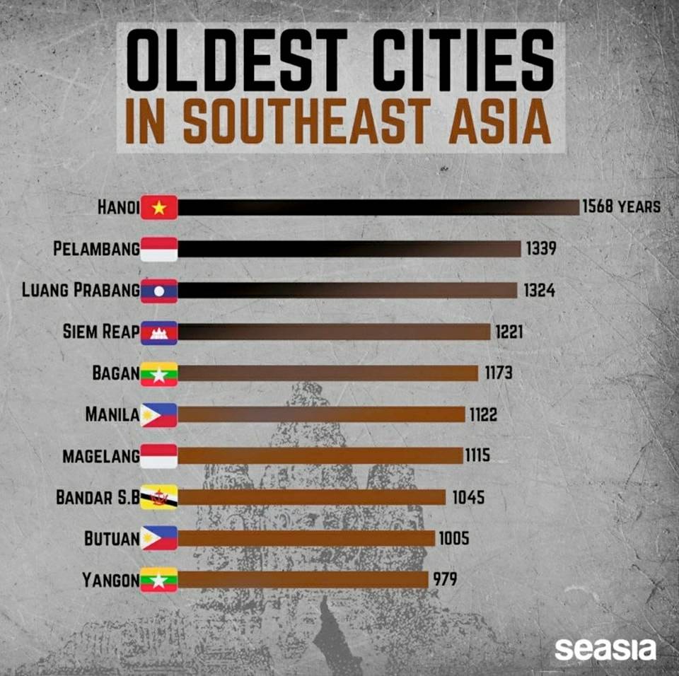 အရှေ့တောင်အာရှ၏ သက်တမ်းအရင့်ဆုံး မြို့များစာရင်းတွင် မြန်မာနိုင်ငံမှ မြို့ (၂) မြို့ ပါဝင်