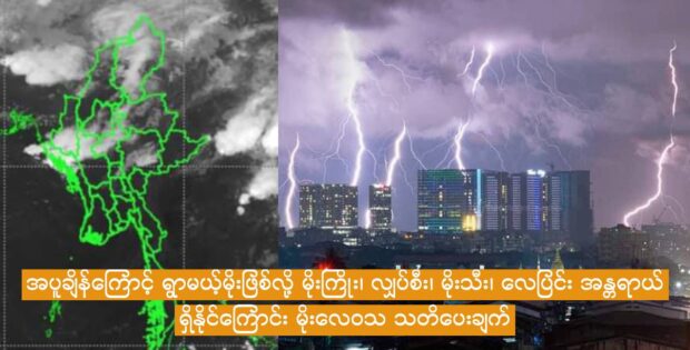 မိုးကြိုး၊ လျှပ်စီး၊ မိုးသီး၊ လေပြင်း အန္တရာယ် ရှိနိုင်ကြောင်း မိုးလေဝသ သတိပေးချက်