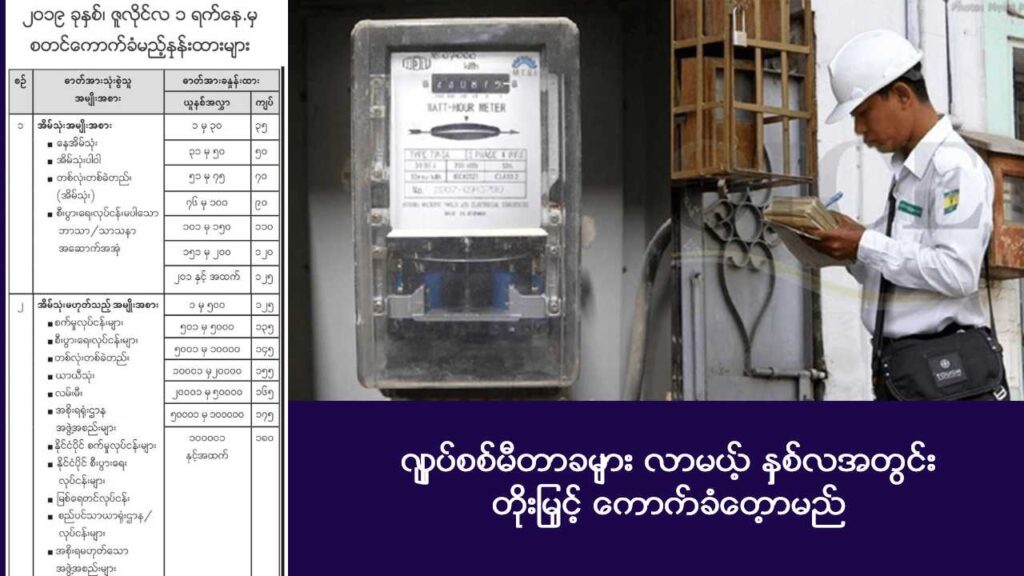 လျှပ်စစ်မီတာခများ လာမယ့် နှစ်လအတွင်း တိုးမြှင့် ကောက်ခံဖို့ သေချာပြီ၊ ၂ဆ ၃ဆ အထိ တက်သွားနိုင်ဖွယ် ရှိ