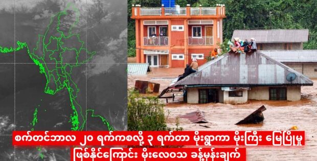စက်တင်ဘာလ ၂၀ ရက်ကစလို့ ၃ ရက်တာ မိုးရွာကာ မိုးကြီး မြေပြိုမှု ဖြစ်နိုင်ကြောင်း မိုးလေဝသ ခန့်မှန်းချက်