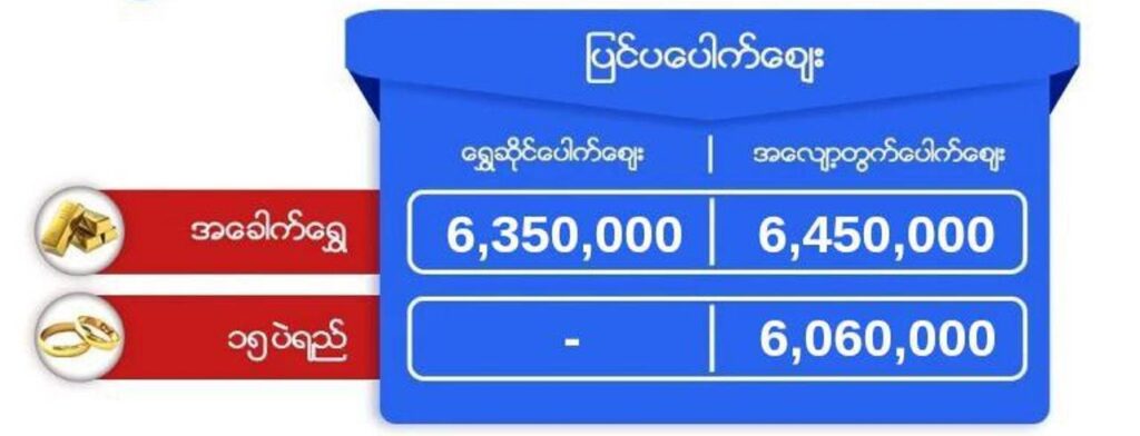ပြင်ပရွှေစျေး ၁ သိန်းနီးပါး ခုန်တက်လာသလို ဒေါ်လာစျေး ပြန်တက်လာပါတယ်။ အချို့ ငွေလဲကောင်တာတွေမှာ ဝယ်မရသလို စျေးပိုပေးရတာတွေ ရှိနေပါတယ်။
