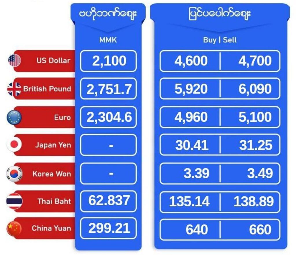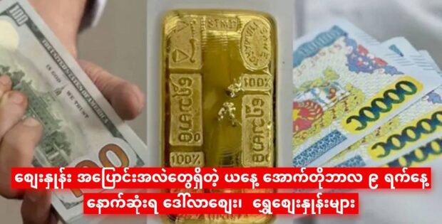 ယနေ့ အောက်တိုဘာလ ၉ ရက်နေ့ နောက်ဆုံးရ ဒေါ်လာစျေး၊ ရွှေစျေးနှုန်းများ