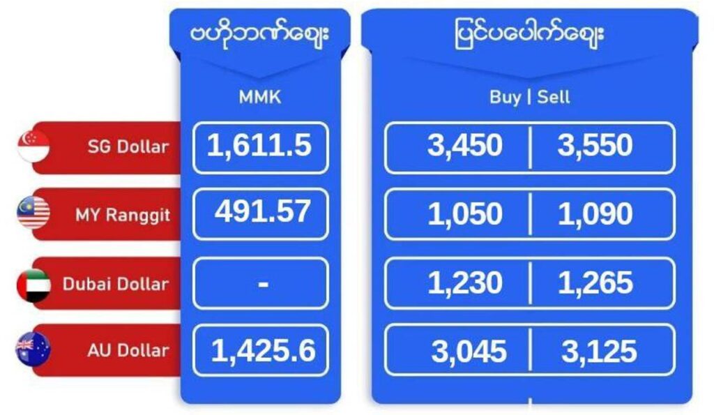 ဒီကနေ့မှာ ကမ္ဘာ့ရွှေစျေးနဲ့အတူ ပြည်တွင်းရွှေစျေး ကျဆင်းလာနေပေမယ့် ဒေါ်လာစျေး ပြန်တက်နေပါတယ်။ စျေးတန်းတွေက သိသိသာသာကြီး ပြောင်းလဲလာတာမျိုး မဟုတ်ဘဲ ပါပါးတက် ပါးပါးကျ ပုံစံပဲ ဆက်သွားနေပါတယ်။