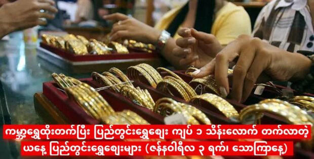 ကမ္ဘာ့ရွှေဟာ နှစ်သစ်ကူးပြီးတည်းက ထိုးတက်နေတာကြောင့် ၃ ရက်အတွင်း ပြည်တွင်းရွှေစျေး ကျပ် ၁ သိန်း ပြန်မြင့်တက်လာနေပါပြီ။