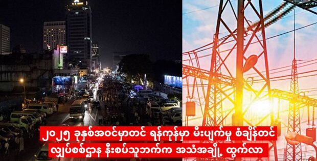 ၂၀၂၅ ခုနှစ်အဝင်မှာတင် ရန်ကုန်မှာ မီးပျက်မှု စံချိန်တင်၊ လျှပ်စစ်ဌာန နီးစပ်သူဘက်က အသံအချို့ ထွက်လာ