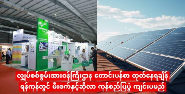 လျှပ်စစ်စွမ်းအားဝန်ကြီးဌာနက ပြည်သူတွေကို တောင်းပန်လာရချိန် ရန်ကုန်မှာတော့ မြန်မာနှင့် တရုတ် ကုမ္ပဏီတွေ ပူးပေါင်းပြီး မီးစက်နှင့်ဆိုလာ ကုန်စည်ပြပွဲ ကျင်းပသွားဖို့ ရှိနေပါတယ်။
