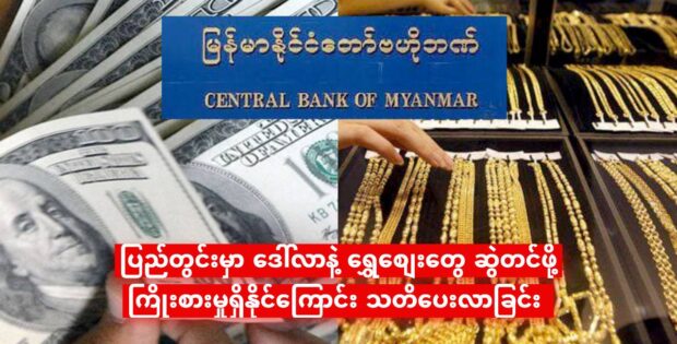 ပြည်တွင်းမှာ ဒေါ်လာနဲ့ ရွှေစျေးတွေ ဆွဲတင်ဖို့ ကြိုးစားမှုရှိနိုင်ကြောင်း သတိပေးလာခြင်း
