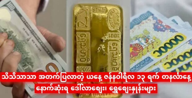 သိသိသာသာ အတက်ပြလာတဲ့ ယနေ့ ဇန်နဝါရီလ ၁၃ ရက် တနင်္လာနေ့ နောက်ဆုံးရ ဒေါ်လာစျေး၊ ရွှေစျေးနှုန်းများ