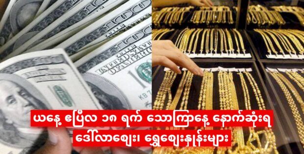 ယနေ့ ဧပြီလ ၁၈ ရက် သောကြာနေ့ နောက်ဆုံးရ ဒေါ်လာစျေး၊ ရွှေစျေးနှုန်းများ