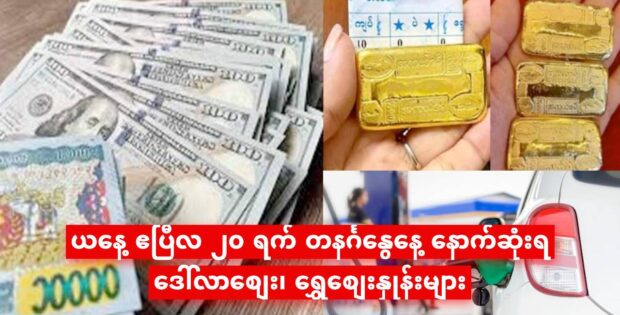 ယနေ့ ဧပြီလ ၂၀ ရက် တနင်္ဂနွေနေ့ နောက်ဆုံးရ ဒေါ်လာစျေး၊ ရွှေစျေးနှုန်းများ