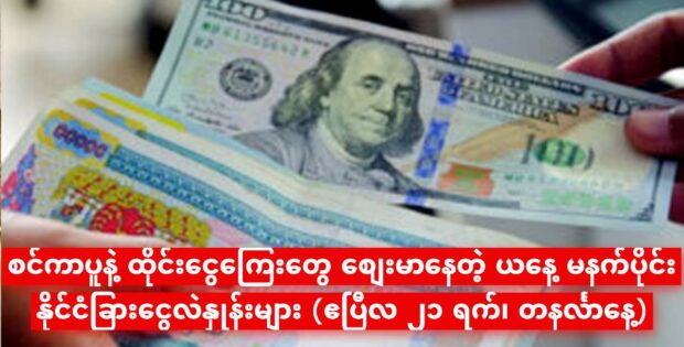 စင်ကာပူနဲ့ ထိုင်းငွေကြေးတွေ စျေးမာနေတဲ့ ယနေ့ မနက်ပိုင်း နိုင်ငံခြားငွေလဲနှုန်းများ (ဧပြီလ ၂၁ ရက်၊ တနင်္လာနေ့)
