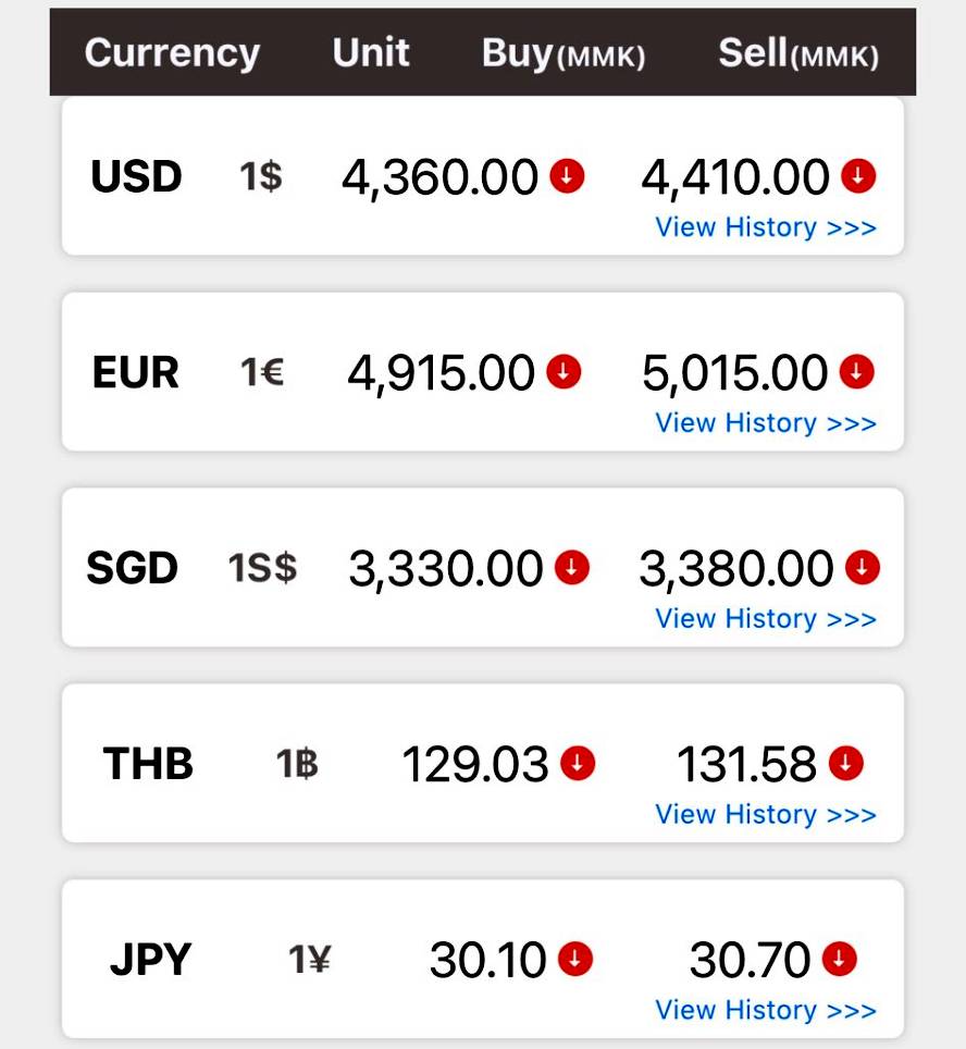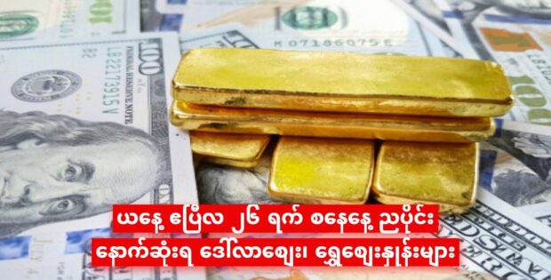 ယနေ့ ဧပြီလ ၂၆ ရက် စနေနေ့ ညပိုင်း နောက်ဆုံးရ ဒေါ်လာစျေး၊ ရွှေစျေးနှုန်းများ