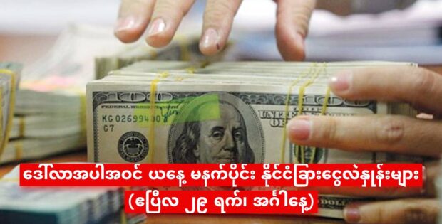 ယနေ့ နိုင်ငံခြားငွေလဲနှုန်းများ (ဧပြီလ ၂၉ ရက်)