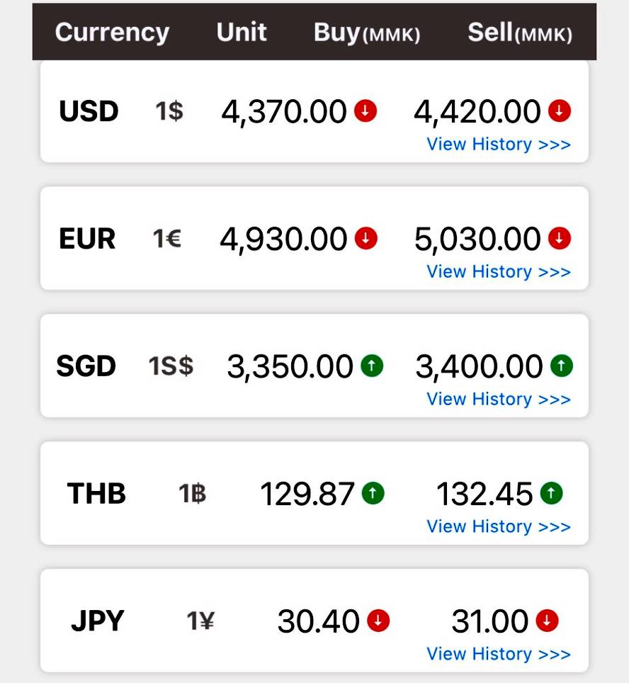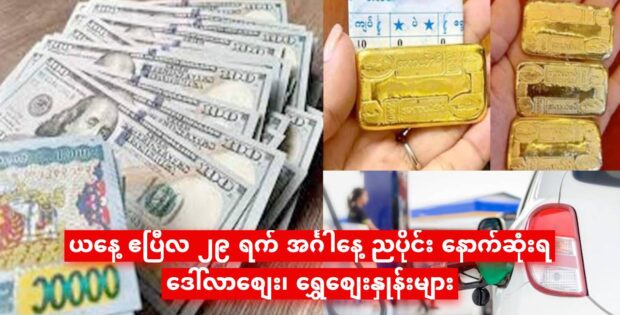 ယနေ့ ဧပြီလ ၂၉ ရက် အင်္ဂါနေ့ ညပိုင်း နောက်ဆုံးရ ဒေါ်လာစျေး၊ ရွှေစျေးနှုန်းများ