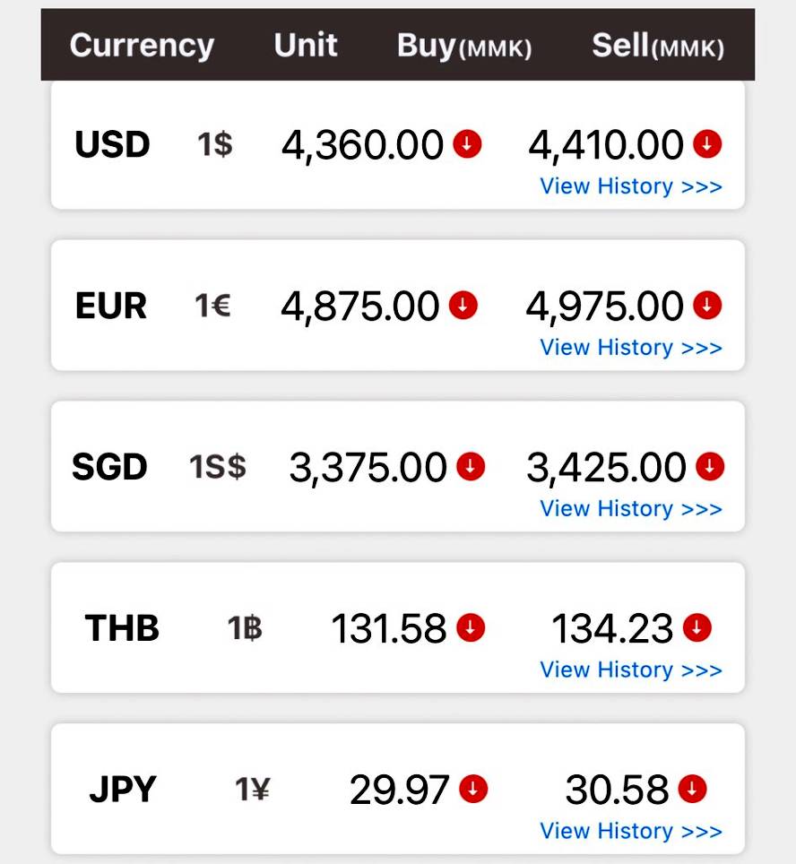 ရွှေစျေး အနည်းငယ် ကျနေပြီး ဒေါ်လာစျေးတွေ ကျရိပ်ပြသနေပါတယ်။