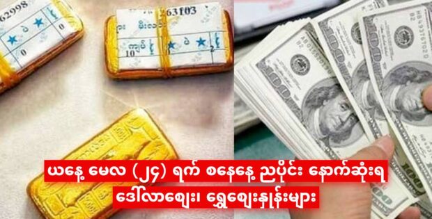 ယနေ့ မေလ (၂၄) ရက် စနေနေ့ ညပိုင်း နောက်ဆုံးရ ဒေါ်လာစျေး၊ ရွှေစျေးနှုန်းများ