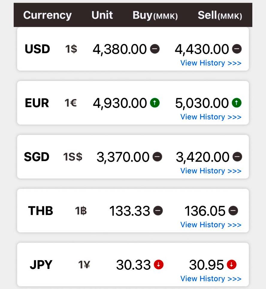 ယနေ့ May လ (26) ရက်နေ့ နောက်ဆုံးရ ဒေါ်လာဈေးနှုန်း ၊ ရွှေဈေးနှုန်းများမှာ အောက်ပါအတိုင်းဖြစ်ပါတယ်။