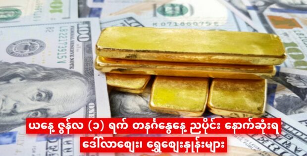ယနေ့ ဇွန်လ (၁) ရက် တနင်္ဂနွေနေ့ ညပိုင်း နောက်ဆုံးရ ဒေါ်လာစျေး၊ ရွှေစျေးနှုန်းများ