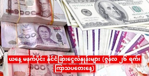 ယနေ့ နိုင်ငံခြားငွေလဲနှုန်းများ (ဇွန်လ ၂၆ ရက်)