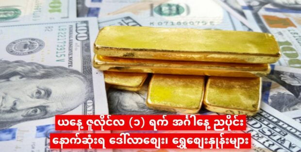 ယနေ့ ဇူလိုင်လ (၁) ရက် အင်္ဂါနေ့ ညပိုင်း နောက်ဆုံးရ ဒေါ်လာစျေး၊ ရွှေစျေးနှုန်းများ