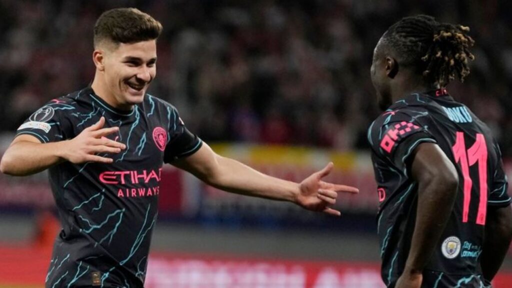 ပွဲချိန် ၈၄ မိနစ်မှာတော့ အဖိုးတန်အနိုင်ဂိုးကို မန်စီးတီးတို့ ပြန်လည်ရှာဖွေနိုင်ခဲ့ကြပြီး ဒီဂိုးကိုတော့ ဘယ်ခြမ်းကနေ တစ်ကိုယ်တော် ထိုးဖောက်လာခဲ့တဲ့ ဒိုကူးက လိမ်ခေါက်ဖြတ်ကျော်မယ့် ပုံစံပြထားပြီး ညာဘက်ကို လှမ်းထိုးပေးခဲ့တဲ့ ဘောလုံးကို အယ်လ်ဗာရက်ဇ်က တစ်ချက်ထိန်းပြီး အဝေးတိုင် ညာဘက်ထောင့်ကို တိကျတဲ့ ကန်ချက်နဲ့ ဝေ့ဝိုက် သွင်းယူသွားခဲ့တာဖြစ်ပါတယ်။