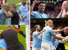 မနေ့ညတုန်းက ရှက်ဖီးနဲ့ မန်စီးတီး ပွဲမှာ မန်စီးတီးပရိသတ်တစ်ဦးဟာ ကွင်းအတွင်းသို့ ကျူးကျော် ဝင်ရောက်လာ ပြီးနောက် တိုက်စစ်မှုး အာလင်းဟာလန်း ပေါ်သို့ ခုန်တက်ကာ နမ်းပြီး အောင်ပွဲခံခဲ့ပါတယ်။ အဆိုပါ မန်စီးတီး ပရိသတ်မှာ ကမ္ဘာ့ လက်ဝှေ့ချန်ပီယံဟောင်း တစ်ဦး ဖြစ်နေပါတယ်။ အသက် ၃၄ နှစ်ရှိ တယ်ရီဖလာနာဂန်က ဗြိတိန်ပရိုဖိုက်တာဟောင်းတစ်ဦးဖြစ်ပြီး မန်စီးတီးပရိသတ်တစ်ဦးလည်း