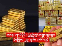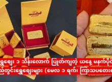 ကမ္ဘာ့ရွှေစျေးဟာ ယခင်လကထက်စာရင် အကျပြနေပေမယ့် သမိုင်းတစ်လျှောက် အမြင့်ဆုံးစျေးတန်းမှာ ရှိနေဆဲဖြစ်ပါတယ်။ ယနေ့ ပြည်တွင်းရွှေဈေး (မေလ ၂ ရက်) -ကမ္ဘာ့ရွှေဈေး တအောင်စ ၃၂၅၈ ဒေါ်လာ ဓာတ်သတ္တု(ရွှေ)ရည်ညွှန်းစျေး – အကယ်ဒမီ မီးလင်းရွှေ တကျပ်သား ၅၆၇၀၀၀၀ ကျပ် စနစ်ဟောင်း (၁ိ – ၁၆.၆၀၆ ဂရမ် =