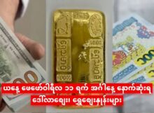 ကမ္ဘာ့ရွှေစျေး အတက်ကြမ်း အကျကြမ်းနေချိန် ပြည်တွင်းရွှေစျေး ၆၆ သိန်းအထက်မှာ ရှိနေပါတယ်။ ယနေ့ February လ (11) ရက်နေ့ ညပိုင်း နောက်ဆုံးရ ငွေဈေးနှုန်း ၊ ရွှေဈေးနှုန်းများမှာ အောက်ပါအတိုင်းဖြစ်ပါတယ်။