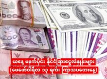 ဗဟိုဘဏ်ဘက်က အမေရိကန်ဒေါ်လာ ရောင်းထုတ်ထားတာမို့ ငွေလဲနှုန်းတွေ အနည်းငယ် ကျဆင်းပါတယ်။ ယနေ့ February လ (8) ရက်နေ့ ညပိုင်း နောက်ဆုံးရ ငွေဈေးနှုန်း ၊ ရွှေဈေးနှုန်းများမှာ အောက်ပါအတိုင်းဖြစ်ပါတယ်။
