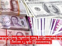 အာရှငွေလဲစျေးတွေ အနည်းငယ် ကျဆင်းလာပါတယ်။ ဒေါ်လာစျေးကတော့ လက်ရှိ စျေးတန်းမှာပဲ ပါးပါးကျ ပါးပါးပြန်တက်ဖြင့် စျေးတန်း ငြိမ်နေပါတယ်။ ယနေ့ နိုင်ငံခြားငွေလဲနှုန်းများ (ဒီဇင်ဘာလ ၁၂ ရက်) -အမေရိကန်ဒေါ်လာ ရောင်းဈေး – ၄၄၅၀ ကျပ် ဝယ်ဈေး – ၄၃၅၀ ကျပ် -ယူရို ရောင်းဈေး – ၄၇၁၀