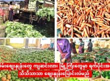 ရှမ်းပြည်နယ်တောင်ပိုင်းဒေသက ထွက်ရှိတဲ့ ကုန်စိမ်းတွေဟာ အခု ဒီဇင်ဘာလ၊ ဒုတိယပါတ်အတွင်း ဈေးဆက်တိုက် ကျဆင်းလာနေတယ်လို့ ကုန်သည်တွေထံကနေ သိရပါတယ်။ အောင်ပန်း-ကလော-သာစည်လမ်းမကြီးရှိ ကျွဲတပ်ဆုံစစ်ဆေးရေးဂိတ်မှာ လမ်းပိတ်ဆို့မှုဖြစ်ပွားနေရာက အထားမခံတဲ့ ကုန်စိမ်းတွေ စျေးကျလာနေတာပါ။ ဒီအတိုင်းဆိုရင် နောက် တစ်ပါတ်၊ နှစ်ပါတ်လောက်အထိ ဈေးထပ်ကျနိုင်သေးတယ်လို့ ကုန်သည်တွေက ဆိုပါတယ်။ ရှမ်းပြည်နယ်တောင်ပိုင်းဒေသက ထွက်ရှိတဲ့ ကုန်စိမ်းတွေကို ရှမ်းပြည်နယ်မြောက်ပိုင်း ကားလမ်းကြောင်း