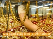 ယနေ့ ပြည်တွင်းရွှေဈေး (မေလ ၂၇ ရက်၊ တနင်္လာနေ့ နံနက် ၁၀ နာရီ) -ကမ္ဘာ့ရွှေဈေး တအောင်စ ၂၃၃၅ ဒေါ်လာ -အခေါက်ရွှေ တကျပ်သား (ပြင်ပဈေးကွက်) ရောင်းဈေး ၅၂၁၀၀၀၀ ကျပ် ဝယ်ဈေး ၅၁၇၀၀၀၀ ကျပ် -၁၅ ပဲရည် တကျပ်သား ရောင်းဈေး ၅၀၁၀၀၀၀ ကျပ်