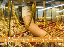 ယနေ့ ရွှေဈေး (မေလ ၇ ရက်၊ အင်္ဂါနေ့ ညနေ ၄ နာရီ) -ကမ္ဘာ့ရွှေဈေး တအောင်စ ၂၃၁၉ ဒေါ်လာ -အခေါက်ရွှေ တကျပ်သား (ပြင်ပဈေးကွက်) ရောင်းဈေး ၄၇၆၀၀၀၀ ကျပ် ဝယ်ဈေး ၄၇၂၀၀၀၀ ကျပ် -၁၅ ပဲရည် တကျပ်သား ရောင်းဈေး ၄၅၆၀၀၀၀ ကျပ်