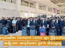 မြန်မာနိုင်ငံကနေ ပြည်ပနိုင်ငံတွေကို အလုပ်သွားရောက် လုပ်ကိုင်မယ့် အမျိုးသားတွေကို မေ ၁ ရက်ကစပြီး ပိတ်ပင်လိုက်ပေမယ့် လက်ရှိမှာ Demand Letter အချို့ကို အလုပ်သမားဝန်ကြီးဌာနဘက်က ပြန်လည်လက်ခံနေပြီး ၅၀ ရာခိုင်နှုန်း ပြန်လည်ခွင့်ပြုခဲ့တယ်လို့ အလုပ်သမားရေးဝန်ကြီးဌာနနဲ့ နီးစပ်သူတွေဆီကနေ သိရပါတယ်။ အမျိုးသား အလုပ်သမားတွေကို ပြည်ပပို့ခွင့် ပိတ်ပင်တာက နောက်ဆက်တွဲ ကြီးမားတဲ့ပြဿနာတွေ ရှိနိုင်တဲ့အတွက်