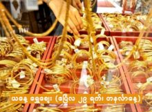 ယနေ့ ရွှေဈေး (ဧပြီလ ၂၉ ရက်၊ တနင်္လာနေ့ နေ့ခင်း ၁၂ နာရီ) -ကမ္ဘာ့ရွှေဈေး တအောင်စ ၂၃၃၀ ဒေါ်လာ -အခေါက်ရွှေ တကျပ်သား (ပြင်ပဈေးကွက်) ရောင်းဈေး ၄၇၉၅၀၀၀၀ ကျပ် ဝယ်ဈေး ၄၇၆၅၀၀၀ ကျပ် -၁၅ ပဲရည် တကျပ်သား ရောင်းဈေး ၄၅၉၅၀၀၀၀ ကျပ်