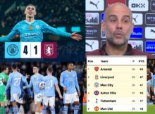 မနေ့ညက မန်စီးတီး အသင်း အီတီဟတ်မှာ အက်စတန် ဗီလာကို ဧည့်ခံ ကစားခဲ့ရာ ၄-၁ နဲ့ အပြတ် အသတ် အနိုင်ရခဲ့ပါတယ်။ ဒီပွဲမှာ ဖီးလ် ဖိုဒန်က တစ်ဦးတည်း ၃ ဂိုး ဟက်ထရစ် သွင်းယူနိုင်ခဲ့ပြီး မန်ချက်စတာစီးတီးတို့ဟာ ပရီးမီးယားလိဂ် ဖလားပြိုင်ဘက်တွေဖြစ်တဲ့ အဆာင်နယ်နဲ့ လီဗာပူးလ်တို့ကို ဖိအားဆက်လက်ပေးနိုင်ခဲ့ပါတယ်။ မန်စီးတီးနည်းပြ