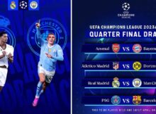 လက်ရှိ ၂၀၂၃-၂၀၂၄ ဘောလုံးရာသီအတွက် ချန်ပီယံလိဂ်ပြိုင်ပွဲရဲ့ ကွာတားဖိုင်နယ် မဲခွဲပွဲကို ဒီညနေမှာ ပြုလုပ်သွားခဲ့ပြီ ဖြစ်ရာ မန်စီးတီး အသင်းကတော့ အခက်ခဲဆုံး ပြိုင်ဘက် တစ်သင်း ဖြစ်မယ့် ရီးရဲလ်မက်ဒရစ်နဲ့ ထိပ်တိုက်တွေ့ပြီ ဖြစ်ပါတယ်။ ကွာတားဖိုင်နယ် မဲခွဲရလဒ်ကတော့ အောက်ပါ အတိုင်း ဖြစ်ပါတယ်။ အာဆင်နယ် vs ဘိုင်ယန်မြူးနစ် အက်သလက်တီကို vs